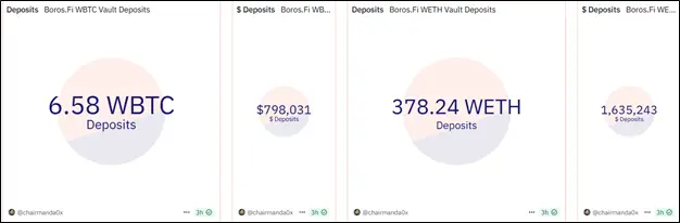 Одним из катализаторов роста TVL стал запуск протокола Boros. С его помощью криптоспекулянты могут осуществлять сделки на покупку и продажу относительно ставок финансирования. Для этого были введены активы Yield Units, которыми можно торговать в сети. Сейчас Boros поддерживает торговлю фандингом только на биткоин и эфир. В заявленных планах разработчиков — позже охватить и другие криптовалюты. За первые четыре дня протокол смог привлечь 6,58 WBTC (чуть меньше $800 000) и 378,24 WETH (более $1,63 млн).
