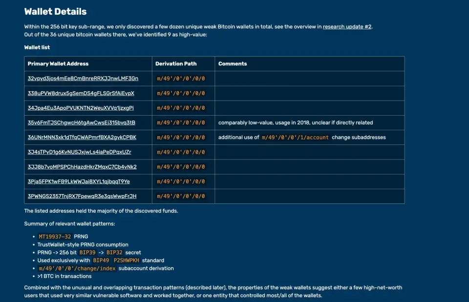 Ончейн-следователь под псевдонимом ZachXBT обратил внимание, что два года назад кошельки, предположительно связанные с Рrince Holding, были помечены в отчете сервиса Milky Sad как имеющие слабые приватные ключи. То есть пароли можно было узнать методом перебора или эксплуатации ошибок генерации ключей.