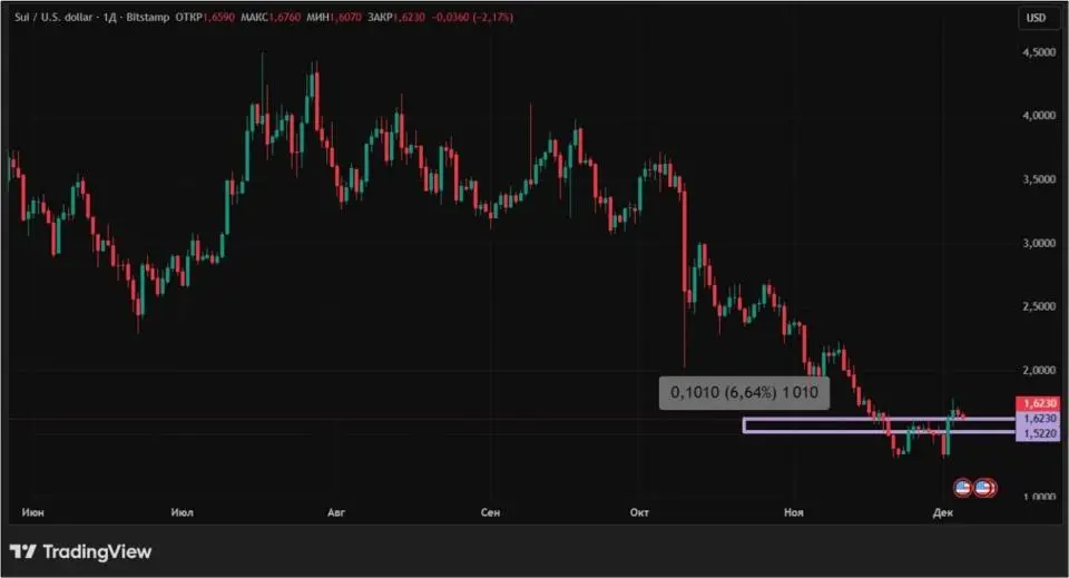 Новость совпала с массивной разблокировкой токенов криптовалюты. 1 декабря в обращение поступили новые 43,92 млн коинов на сумму $66,32 млн. Тем не менее, даже столь значительное увеличение предложения не помешало Sui подрасти по итогам недели.
