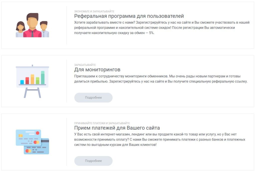 Для тех, кто хочет зарабатывать на привлечении клиентов, сервис предлагает выгодную партнёрскую программу. Достаточно зарегистрироваться и получить свою реферальную ссылку — вы будете получать процент с каждой операции, совершённой по вашей рекомендации. Отличный способ получать пассивный доход без вложений.