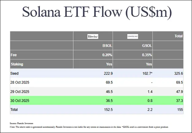 Еще одним негативным моментом для Solana могли стать относительно скромные результаты запуска двух биржевых фондов на эту криптовалюту: The Bitwise Solana Staking ETF (BSOL) и The Grayscale Solana Trust (GSOL), конвертированный из траста. Первый за три дня привлек $152,9 млн, а второй за двое суток — $2,2 млн. Оба этих ETF не являются спотовыми, тогда как инвесторы уже долгое время ждут запуска именно таких ETF.
