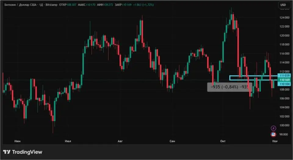 Падение стоимости биткоина с 24 по 31 октября 2025 года составило 0,84%. В первые дни недели BTC демонстрировал рост, преодолев отметку $116 000. Однако рост был сведен на нет четырьмя подряд минусовыми сессиями, с понедельника по четверг.
