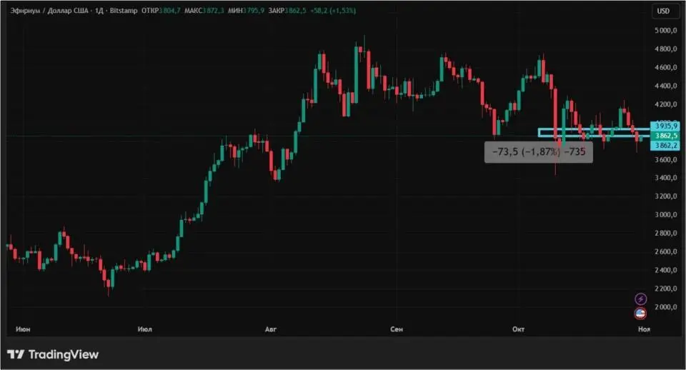 Основным катализатором снижения эфира, как и биткоина, стали экономико-политические дрязги. Тем не менее, происходящее не сильно испугало корпоративных инвесторов. Например, компания BitMine, создающая свой резерв эфира, на прошедшей неделе увеличила свои запасы на 77 055 ETH (почти на $300 млн).
